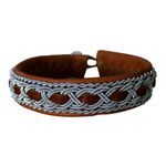 Swedish lapland bracelet. pewter & brown reindeer leather. 8/16" width & 6.5" long.